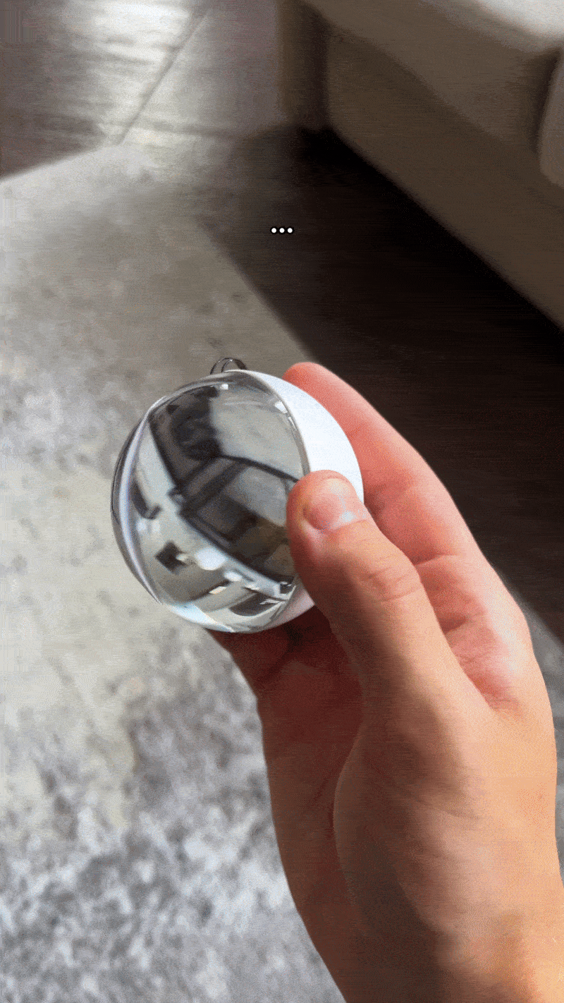 Simply connect your Bauble via USB-C (cable included) to your computer. Then, upload your chosen video — your special moment will appear within the orb as if awakened by magic. Once charged, it glows on its own for 2–4 hours, replaying your story in perfect 480×480 resolution with soft sound through its built-in speaker.